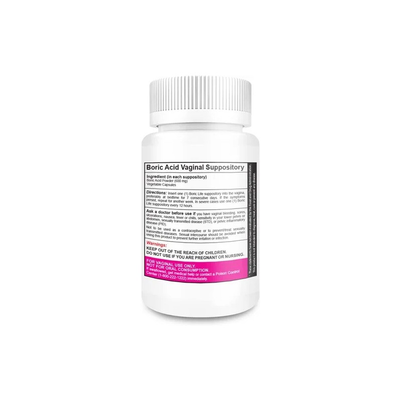 Soporte natural seguro y eficaz para molestias vaginales. Las cápsulas de supositorios bóricos femeninos apoyan la salud vaginal equilibrando tu nivel de pH.