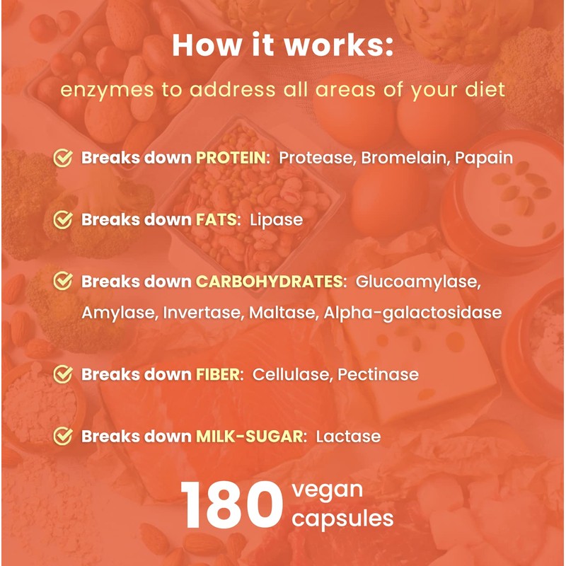 - Combat Bloating & Discomfort - With over 10 essential enzymes, including Amylase, Lipase, and Protease, to ensure thorough digestive support across all food groups - dairy, fats, proteins, carbs, and fiber. It’s time to eliminate meal time discomfort!