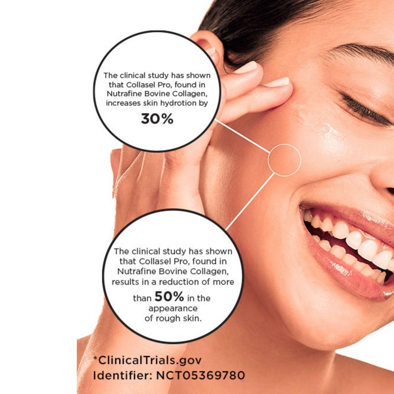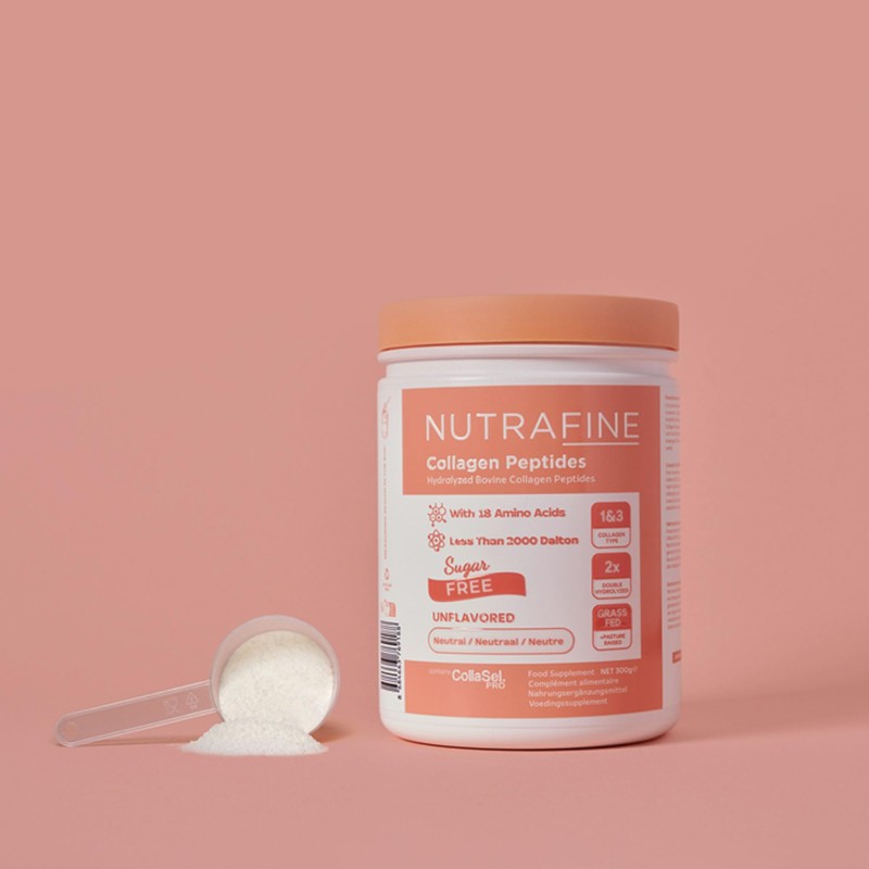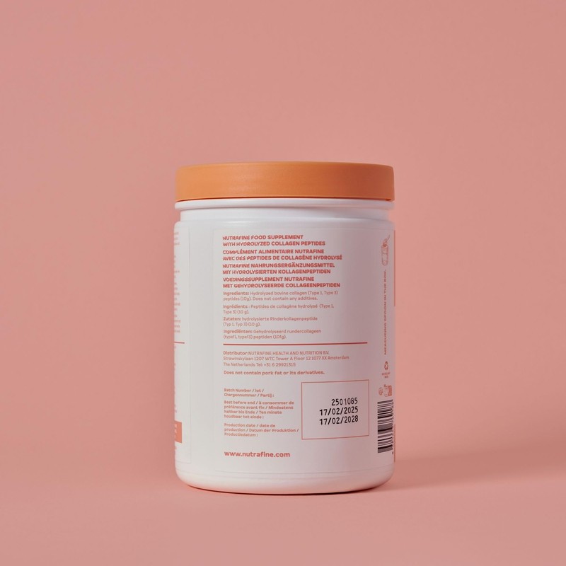 Product descriptionNutrafine Collagen Powder C Hydrolysed Bovine Collagen Peptides C 100% Pure C 300 grams Experience the purity of Nutrafine Collagen Powder, made from premium bovine sources to support your daily protein intake and overall wellbeing. This supplement contains only Collasel PRO hydrolysed collagen peptides, known for their excellent solubility and absorption, with a low molecular weight 2000 daltons. Nutrafine Collagen Powder provides Types I & III collagen, rich in 18 essential and non-essential amino acids that form a natural part of your body's protein structure. The powder is completely tasteless and odourless, making it easy to integrate into your daily routine without affecting the flavour of your favourite drinks or meals. Each serving is free from sugar, fillers, and artificial additives, ensuring a clean and natural choice for your supplement regimen. Simply add one scoop to coffee, smoothies, water, or yoghurt for a convenient way to increase your protein intake. Recommended Use: Mix 1 scoop (10 grams) daily into your drink or meal of choice. Do not exceed the recommended daily dose. Storage Advice: Store in a cool, dry place below 25C to maintain freshness and product integrity. Nutrafine C Supporting your journey towards beauty and wellbeing from within, every single day.IngredientsBovine Collagen