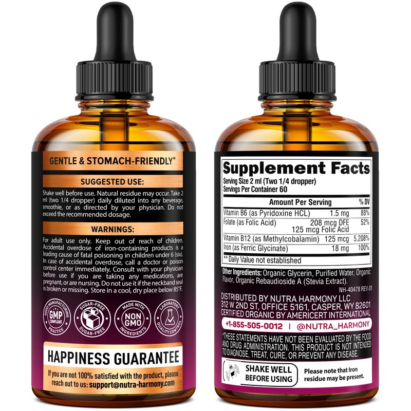Vitamin B Complex Capsules & Organic Iron Drops by Nutraharmony