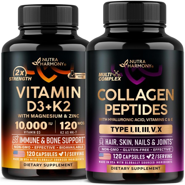 Vitamin D3 K2 Capsules & Collagen Peptides Capsules by Nutraharmony.