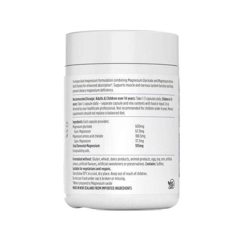 - Magnesium glycinate 600mg Equiv. Magnesium 67.3mg,