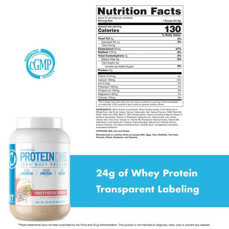 NutraOne ProteinOne Whey Protein Promote Recovery and Build Muscle with a Protein Shake Powder for Men & Women (Fruity Bites Cereal - 2 lbs.)
