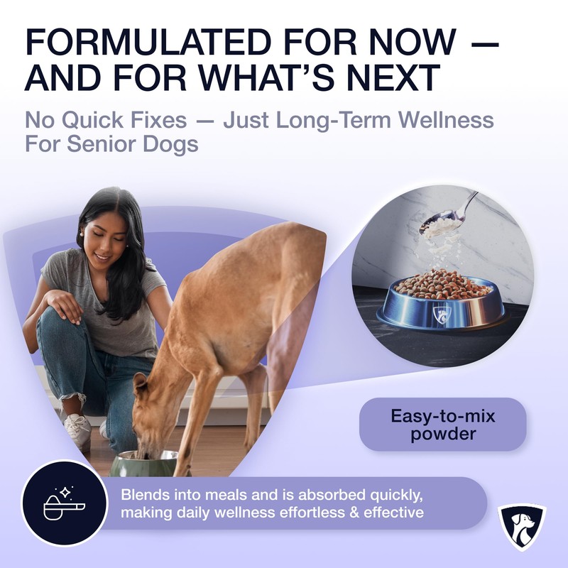 • EASY-TO-MIX POWDER – Smooth-blending powder mixes easily with food for stress-free daily use. Start with half the recommended serving to help your senior dog adjust. (Container may appear less full but contains the correct 30 scoops as labeled.)