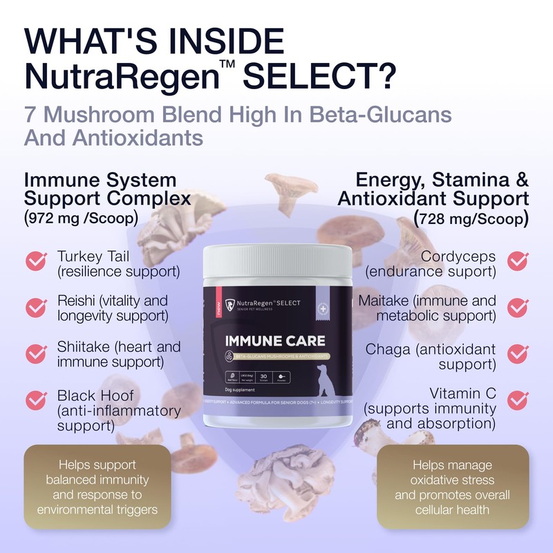 NutraRegen Select Immune Mushroom Powder for Senior Dogs – Beta-Glucans & Ant...