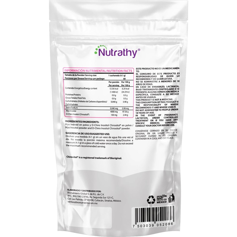 Nutrathy Myo & D-Chiro Inositol en Polvo 246g. Chirositol™. Mezcla Óptima 40:1, 4000mg Myo Inositol y 100mg D-Chiro Inositol, Ingredientes 100% Naturales, Gluten Free, Sugar Free, Vegan, Bottle Free.