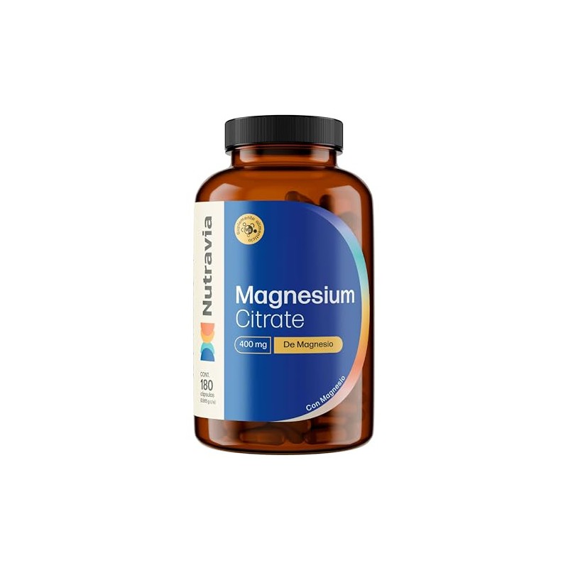 Nutravia Citrato de Magnesio 400mg Suplemento - Esenciales Vitaminas para Mujer y Hombre - Alta Absorción, Sin OGM Magnesium Citrate Minerales Suplemento - 180 Cápsulas