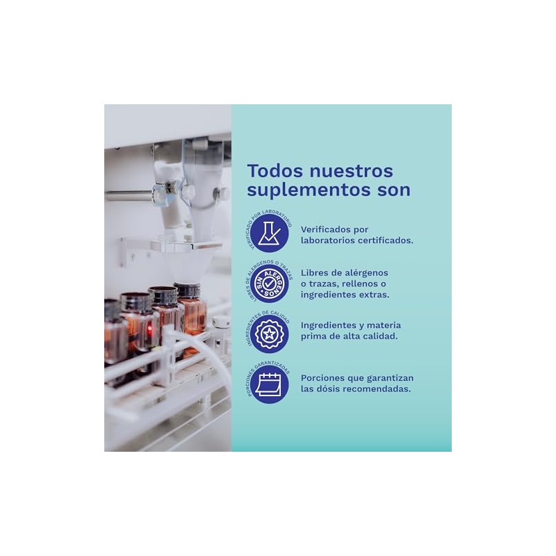 - Nuestros suplementos contienen solo ingredientes puros, no modificados genéticamente (sin OGM), lo que brinda una forma limpia y saludable de alcanzar objetivos nutricionales sin rellenos ni aditivos innecesarios. Marca Confiable con Calidad Certificada