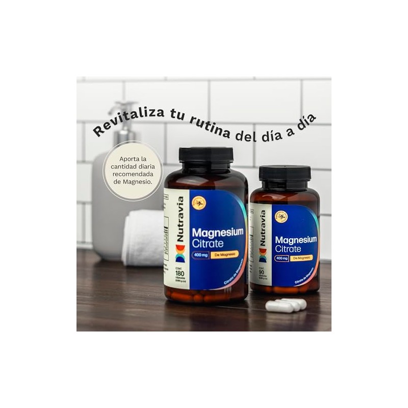 Nutravia Citrato de Magnesio 400mg Suplemento - Esenciales Vitaminas para Mujer y Hombre - Alta Absorcin, Sin OGM Magnesium Citrate Minerales...