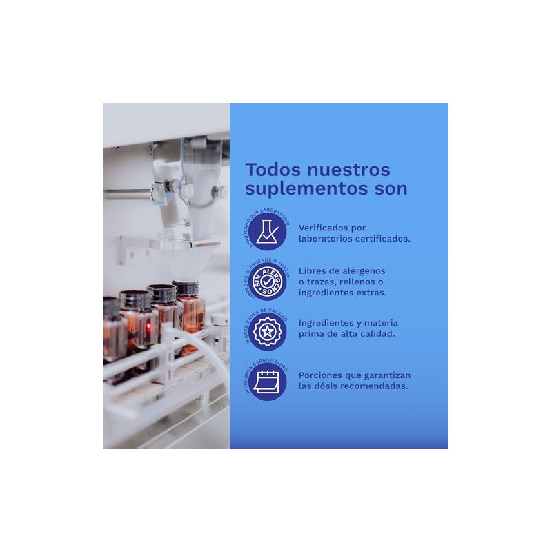 - Nuestros suplementos contienen solo ingredientes puros, no modificados genéticamente (sin OGM), lo que proporciona una forma limpia y saludable de lograr objetivos nutricionales sin rastros, alérgenos, gluten, rellenos ni aditivos innecesarios. Marca confiable con calidad certificada
