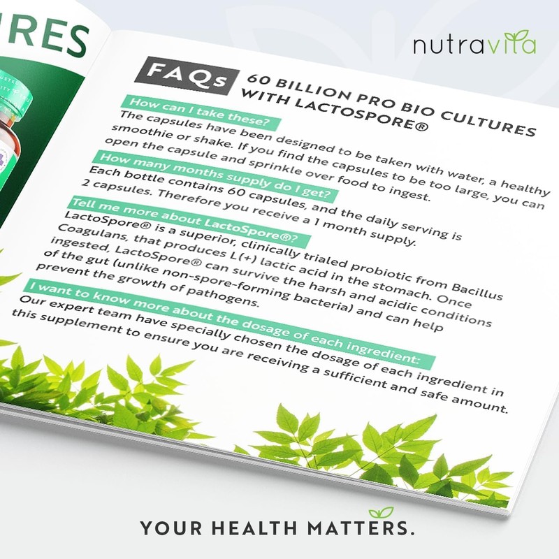 Nutravita 60 Billion CFU Probiotic Cultures – 2 Packs of 60 – Lactospore® for Gut Health – Enteric-Coated for Maximum Absorption – UK Made