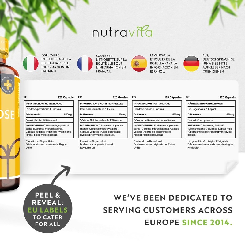 Nutravita D-Mannose 1650mg High Strength Capsules – 180 Vegan Friendly Capsules (Not Tablets) – 100% Natural Premium D Mannose Supplement – Made in The UK by Nutravita