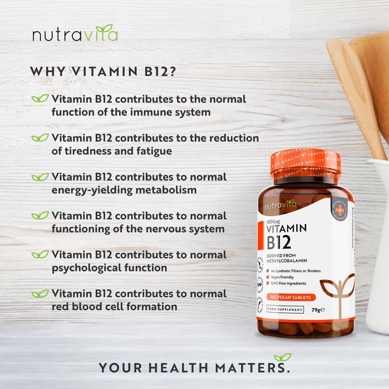 Nutravita Vitamin B12 1000mcg - Supports Normal Brain and Energy Functions - 365 Vegan Tablets - Healthcare Supplement