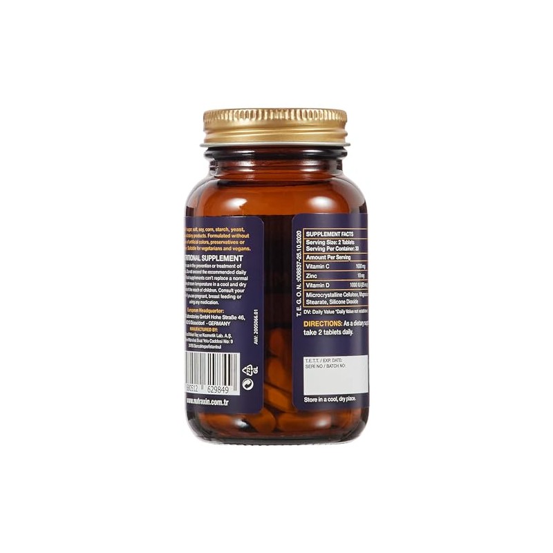 - Nutraxin Vitamin Max; içeriğinde bulunan Vitamin C, Vitamin D ve Çinko ile üç güçlü bileşeni bir arada sunmaktadır. 1000 mg C vitamini,1000 IU D Vitamini ve 10 mg çinko içermektedir.