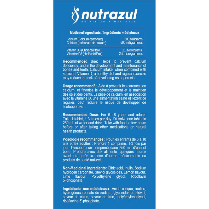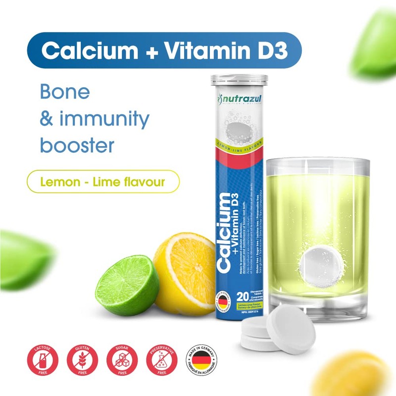 nutrazul Nutrazul Calcium + Vitamin D3 Effervescent Tablets | 60 Tablets | Supports Bone Health & Maintenance | Protect Against Osteoporosis | For Adults & Kids | Lemon-Lime Flavor