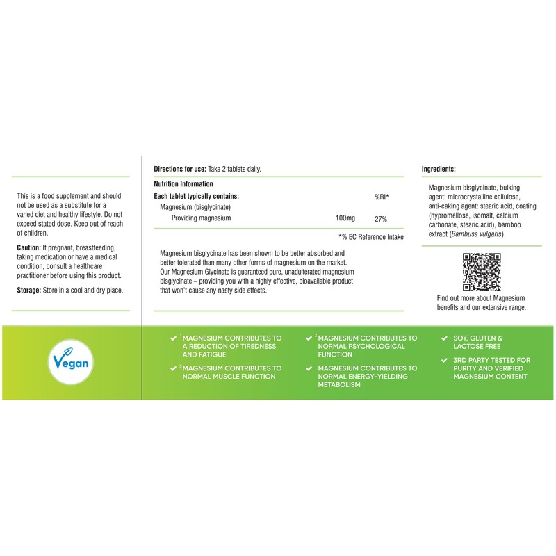 - Clinically Verified Strength: Each tablet delivers 100mg of elemental magnesium from 740mg of fully reacted magnesium glycinate, with strength validated by regular third-party testing for reliable and precise dosing