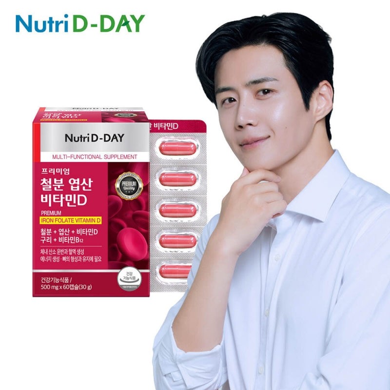 Nutri D Day Premium Iron Folic Acid Vitamin D 60 Capsules 2 Months Supply / 뉴트리디데이 프리미엄 철분 엽산 비타민D 60캡슐 2개월분