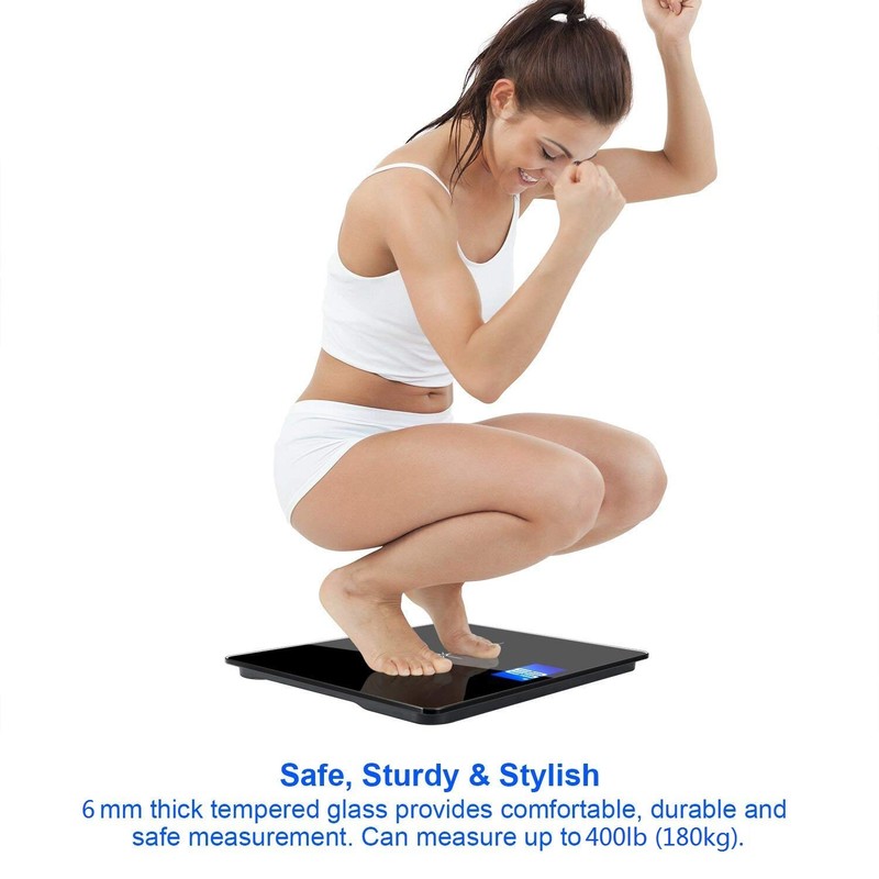 - Durable, Sturdy & Steady Platform: 6 mm-thick tempered glass, rounded corners, anti-skid pads and rollover protection not only provide exceptional sturdiness but also make the bathroom scale more durable and safe. Its large platform is comfortably accommodating and suitable for everyone to use, especially taller people and those with balance issues.