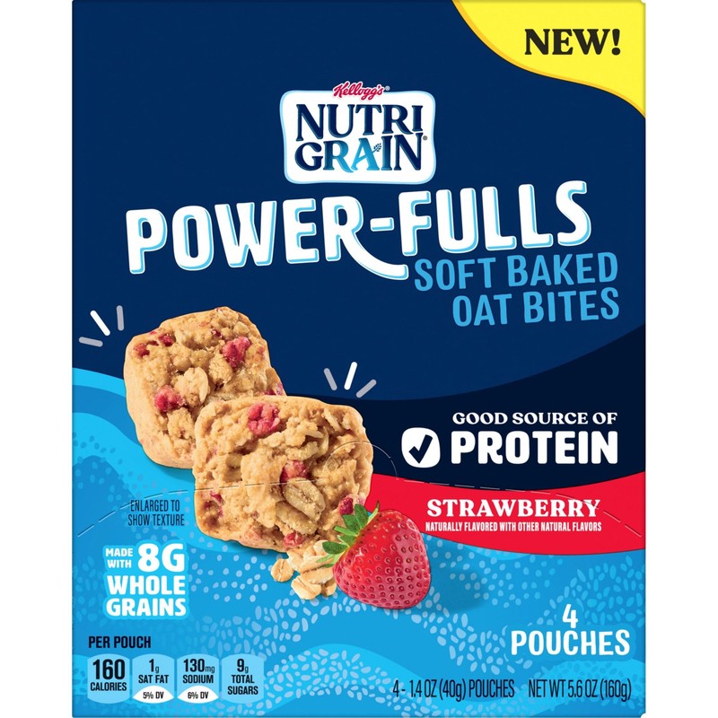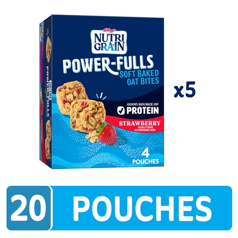 Nutri-Grain Power-Fulls Soft Baked Oat Bites, Protein Snacks, Whole Grain, Strawberry (5 Boxes, 20 Pouches)