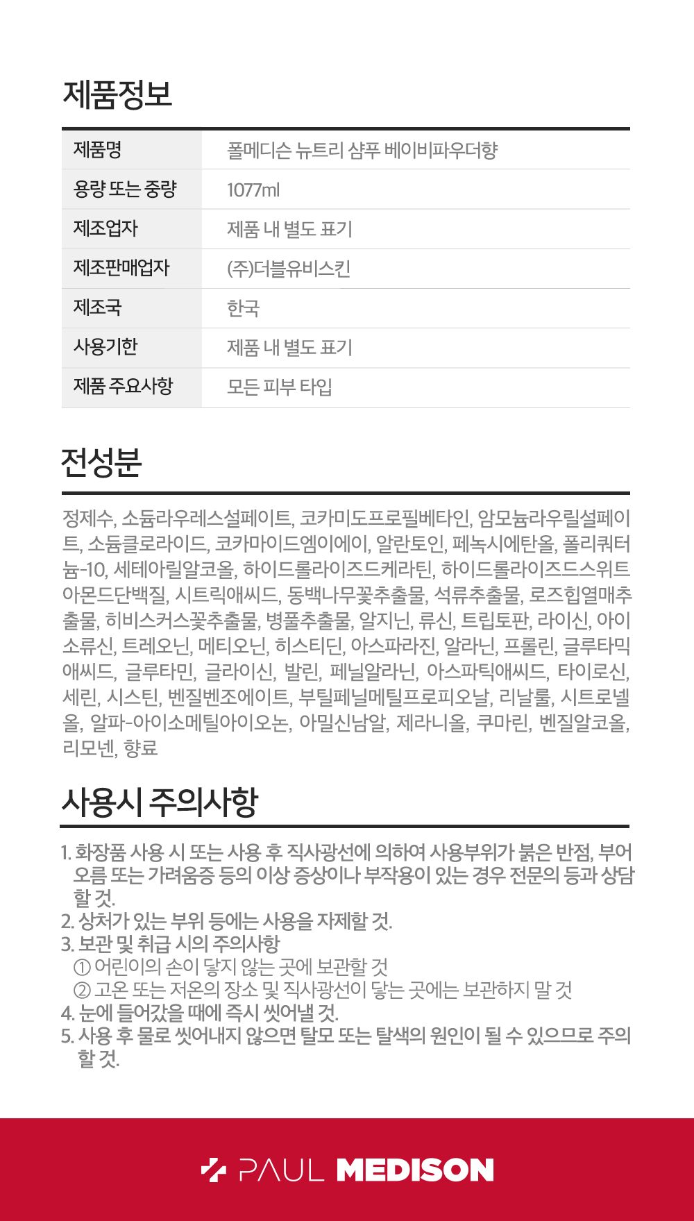 Nutri Shampoo Baby Powder Scent 1077ml / 뉴트리 샴푸 베이비파우더향 1077ml