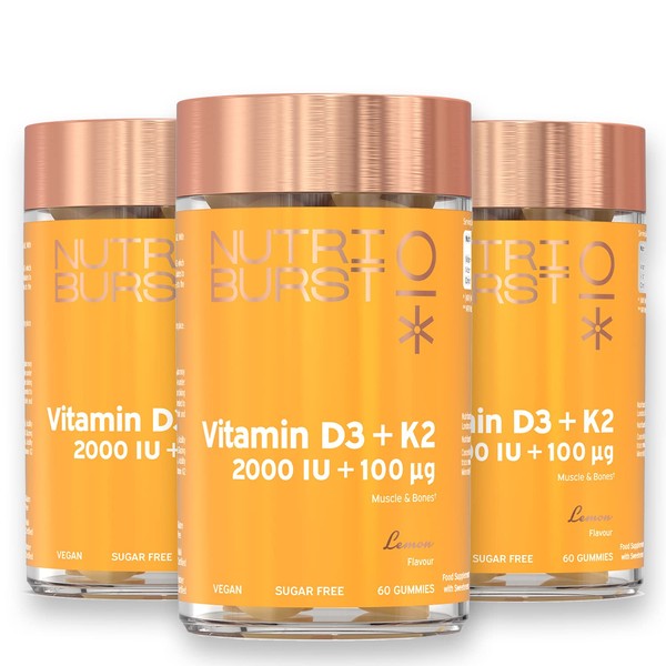 - 💡 EXPERIENCE BETTER BONE HEALTH & SKELETAL FUNCTION. Our Nutriburst Vitamin D3 (25µg) & K2 (50µg) gummies contain a simple balance of these two essential nutrients. Sunlight is the most common source of Vitamin 'D' but due to Britain's climate, it is difficult to maintain its levels throughout the year and it is essential for immune system function and cell division. Like D3, Vitamin K2 contributes to the maintenance of normal bones as it activates several proteins involved in bone formation.