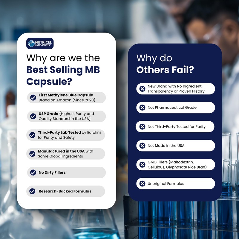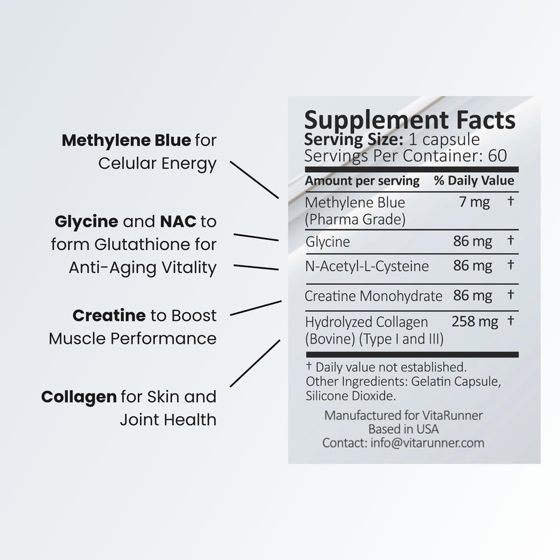 Methylene Blue Pharmaceutical Grade Capsules, with Added Glycine + NAC for Enhanced Antioxidant Activity, Collagen and Creatine for Anti-Aging Support, Youth and Longevity Formula