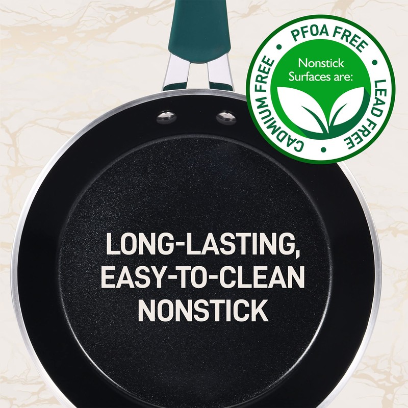 - Cookware Set: 11-piece non-stick ceramic cookware set features cool-touch handle grips, a modern design, and a pattern of elegant lines to match any kitchen