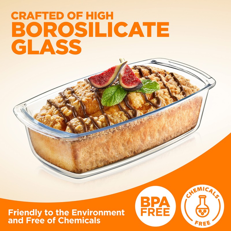 - SAFE & RELIABLE: Unlike plastic, this food storage glass loaf pan bundle is free of chemicals & environment friendly. Hot foods can be placed directly to the containers as no chemicals will leech into the food & lids are crafted of BPA-free plastic