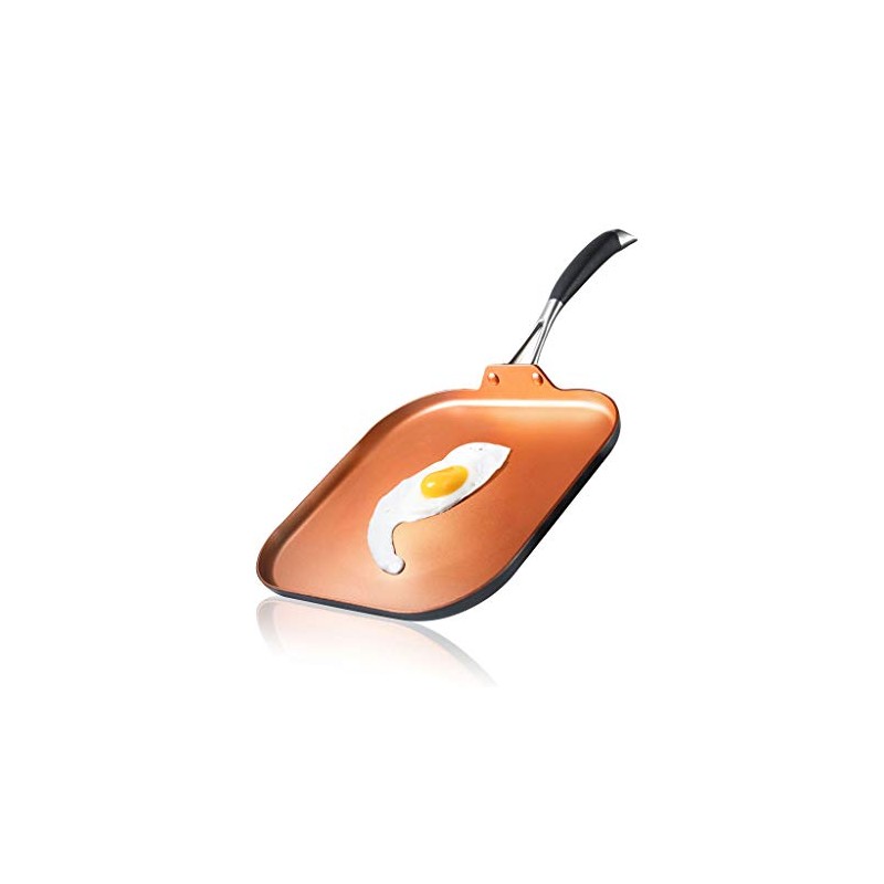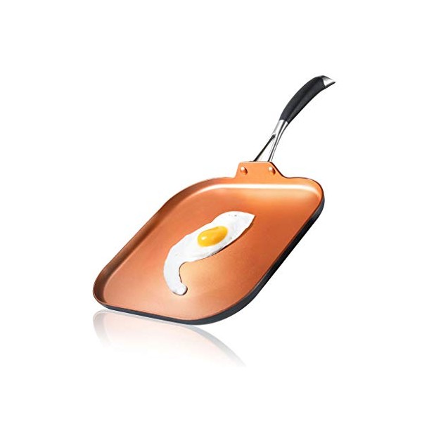 NutriChef Nonstick Kitchen Cookware Set Copper Non-Stick Coating Inside, Hard-Anodized Look Heat Resistant Lacquer Outside, Silicone Handle NCSQPA, 1 Griddle