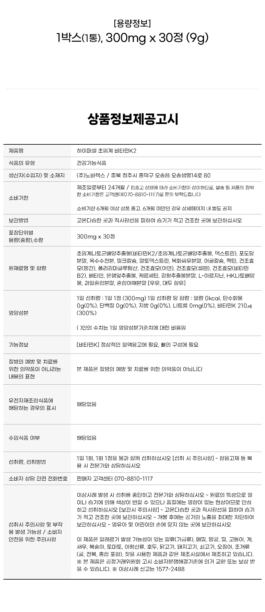 뉴트리코어 하이퍼셀 초임계 비타민 K2 300mg x 30정