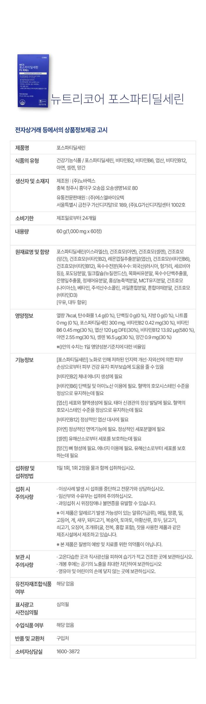 뉴트리코어 WCS 포스파티딜세린 PS 피에스 60정 x 12박스