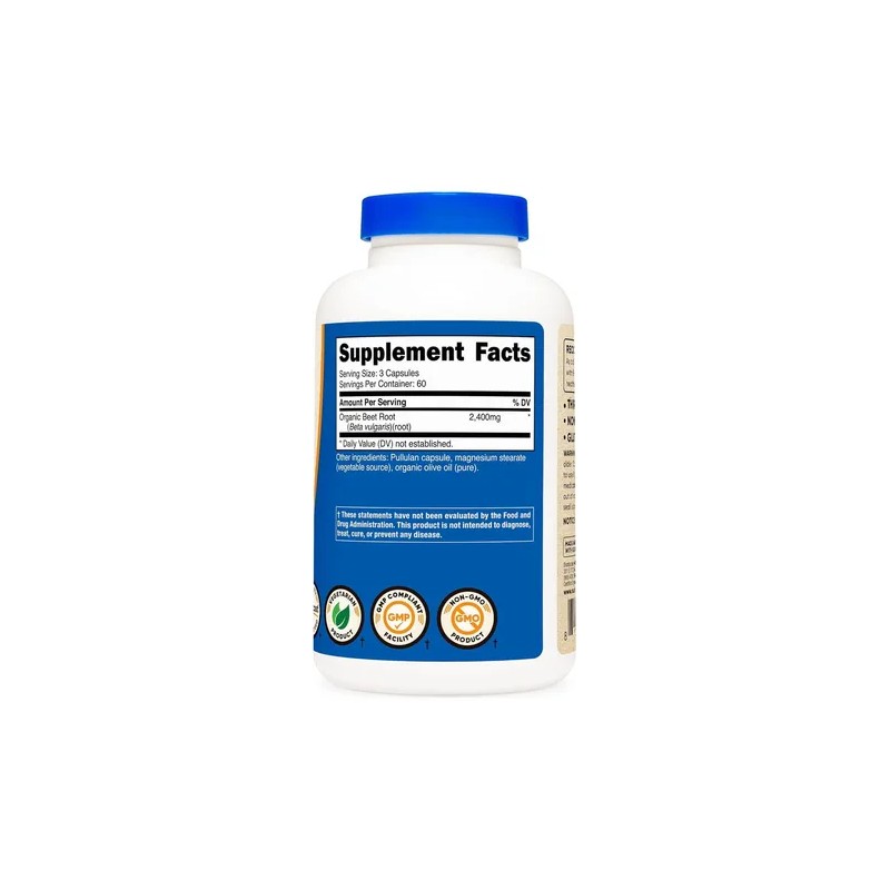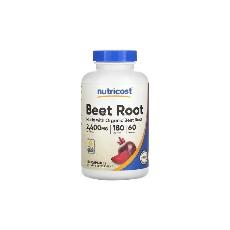 Potencia tu salud con Nutricost Beet Root, un suplemento de raíz de remolacha orgánica en cápsulas, ideal para mejorar la circulación, energía y rendimiento físico. Cada porción contiene 2400 mg, elaborado bajo estándares GMP y probado por terceros.