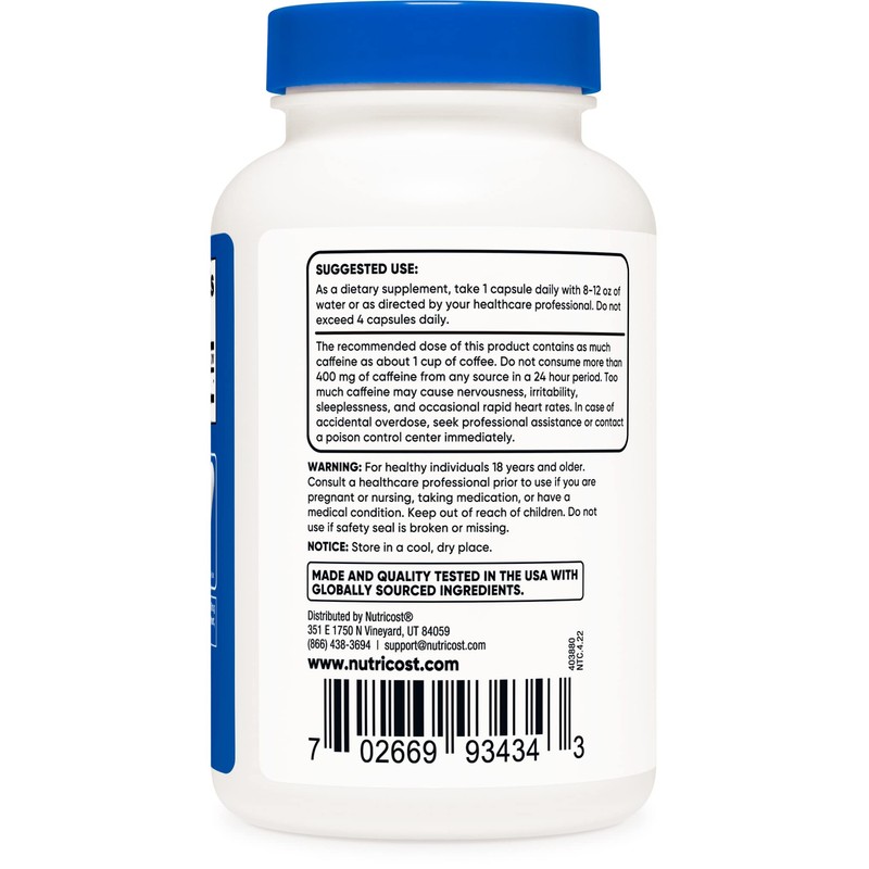 - 100mg of Caffeine Per Capsule