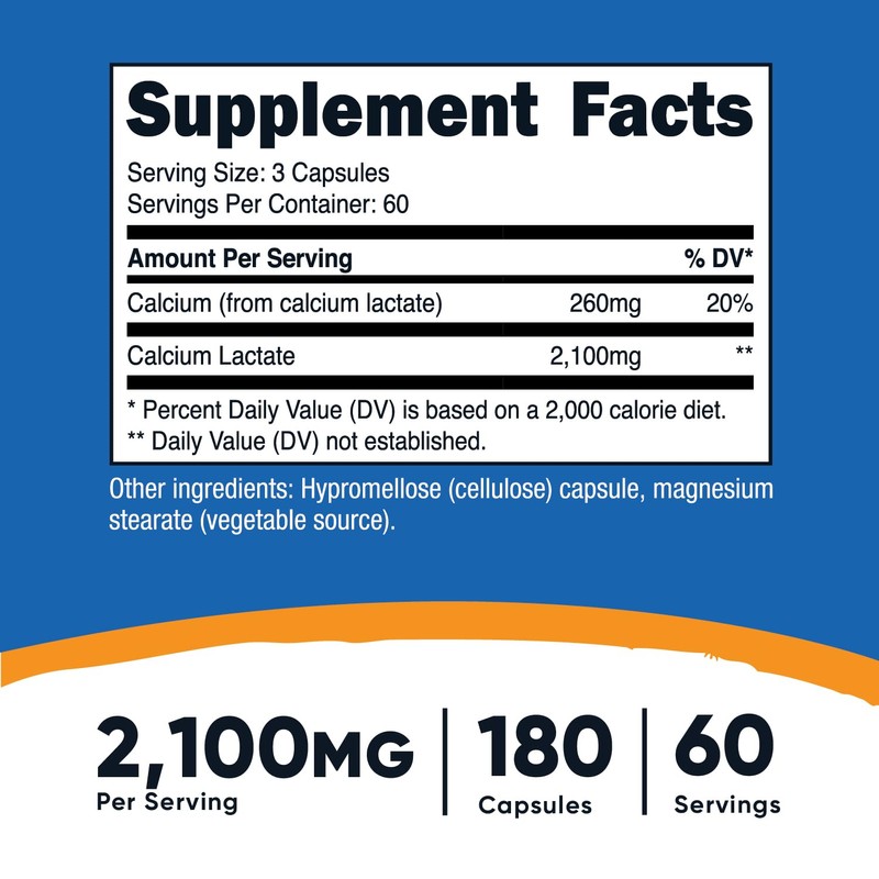 - High-quality Calcium Lactate: Nutricost's product offers a potent source of calcium in the form of calcium lactate, which is known for its bioavailability and ease of absorption by the body.