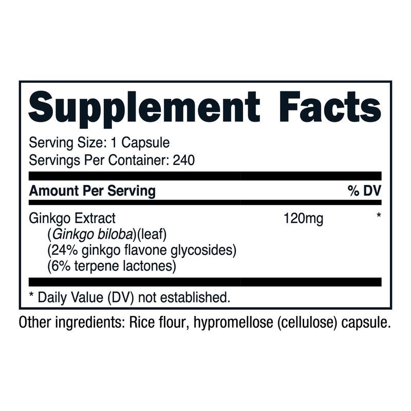 Nutricost Ginkgo Biloba 120mg, 240 Capsules - Extra Strength Ginkgo Biloba Extract - Gluten Free & Non-GMO