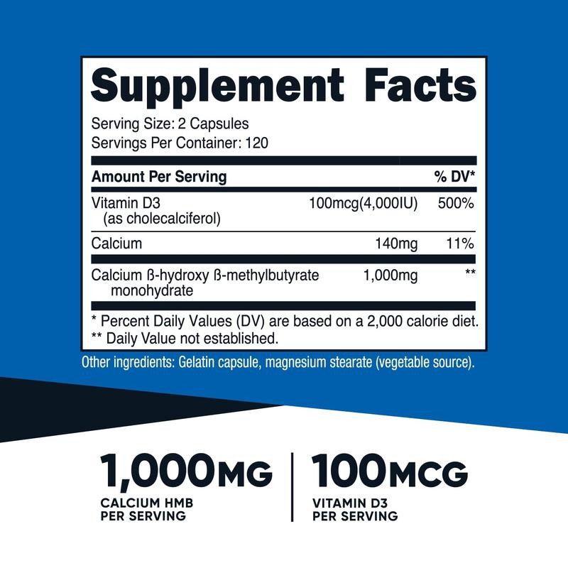 Nutricost HMB (1000mg) and Vitamin D3 (4000 IU) Supplement - 240 Capsules, 120 Servings - Gluten Free and Non-GMO