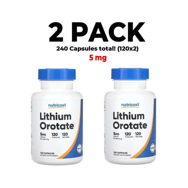 Nutricost, Lithium Orotate, 2 PACK, 5 mg, 120 Capsules (240 total!)