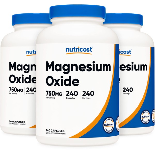 Nutricost Magnesium Oxide 750mg, 240 Capsules (3 Bottles)