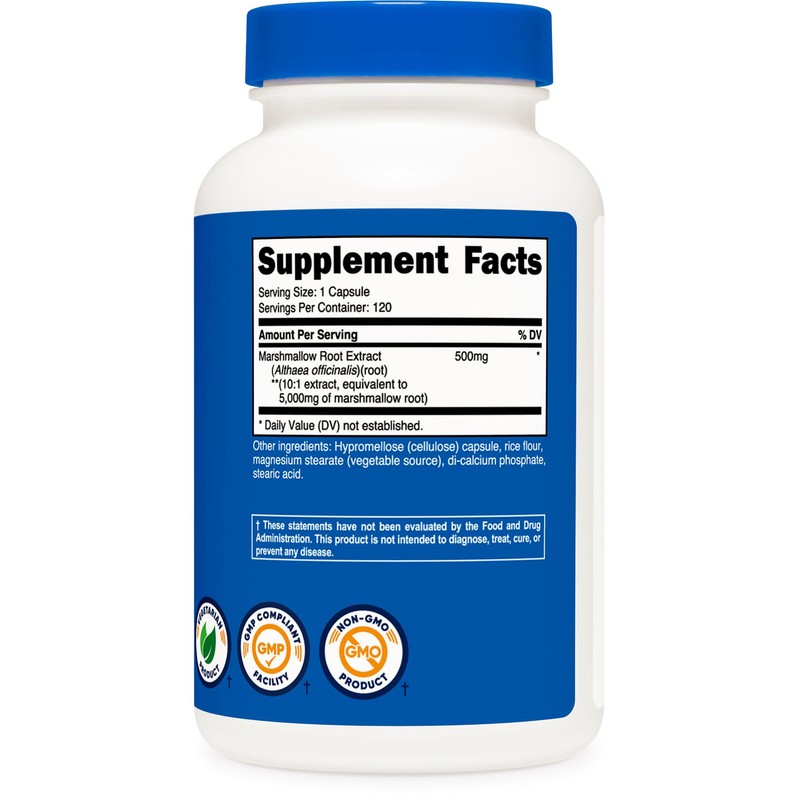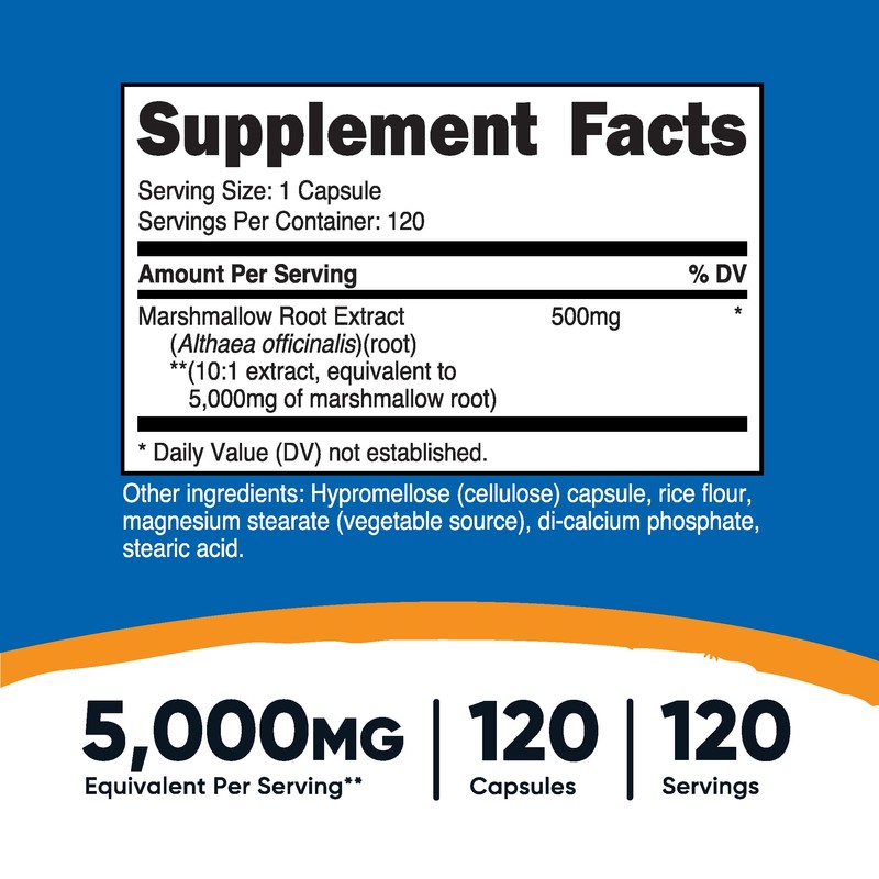 - 5,000mg Equivalent of Marshmallow Root Per Capsule (From 500mg of 10:1 extract)