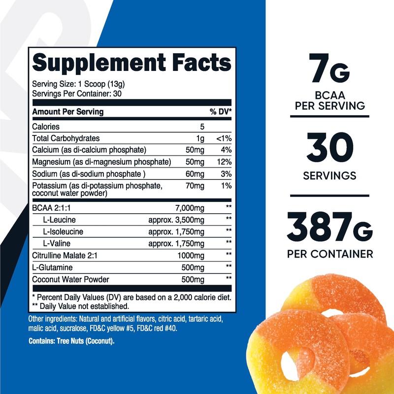 Nutricost Nutricost BCAA + Hydration Powder (Peach Rings) 30 Servings - Branched Chain Amino Acids with Hydration Complex - Gluten-Free, Non-GMO