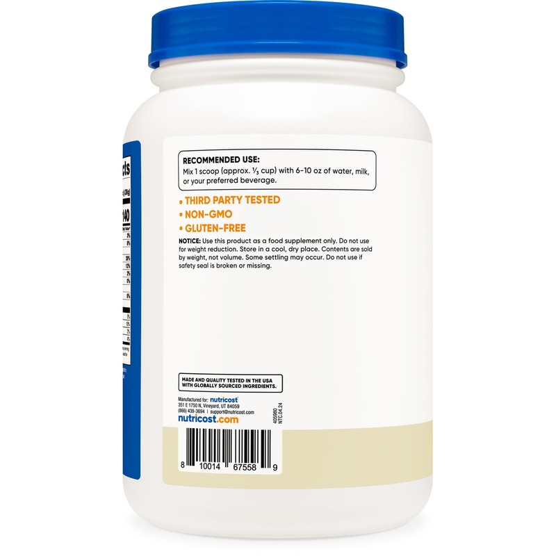 Nutricost's Premium Grass-Fed Whey Protein Concentrate is cold processed, rBGH Free, non-gmo, and gluten free. Nutricost's Whey Protein Concentrate and is undenatured! It is also made exclusively from Kosher and Halal Certified Protein!
