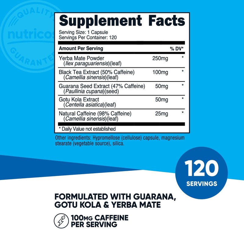 Nutricost Nutricost Natural Energy Pills Complex 120 Capsules, 100mg Caffeine - Gluten Free - Non-GMO