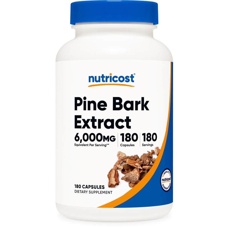 Nutricost Nutricost Pine Bark Extract 6000mg Equivalent (from 300mg of 20:1 Extract), 180 Capsules, Standardized to Contain 95% Proanthocyanidins - Vegetarian, Non-GMO and Gluten Free