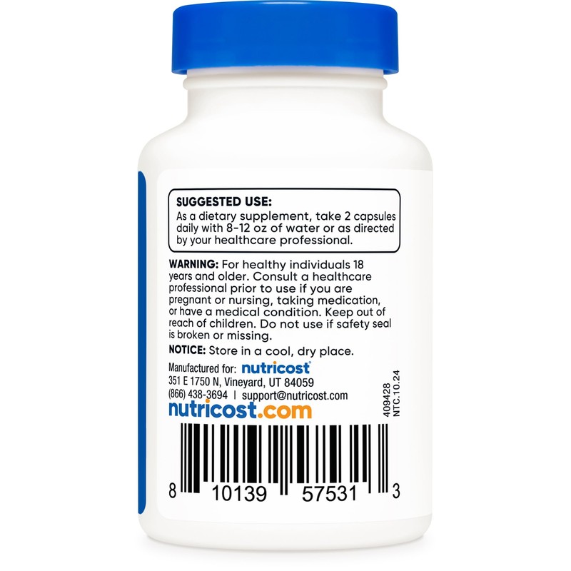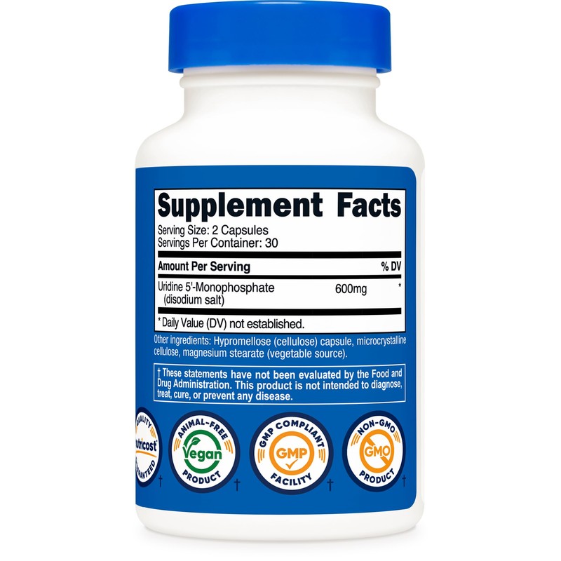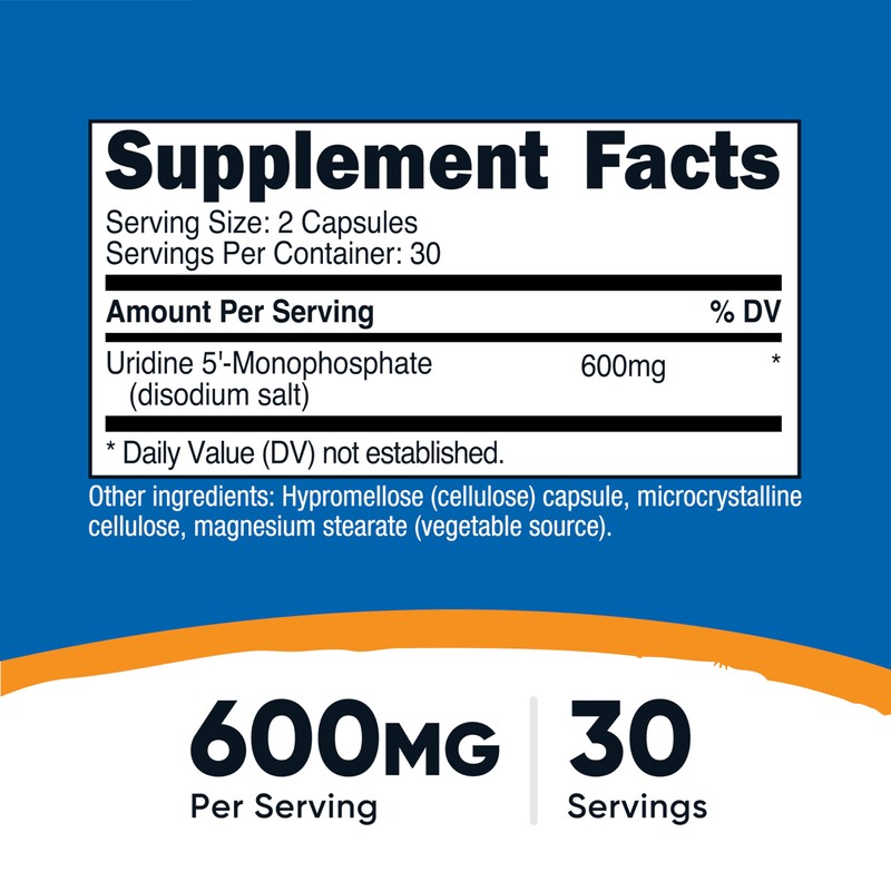 Nutricost Uridine Monophosphate 60 Capsules, 600 mg per Serving - Vegan, 30 Servings