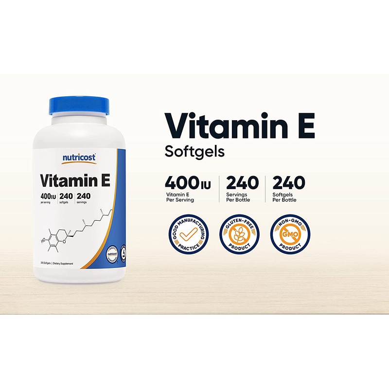 Nutricost Vitamin E 400 IU, 240 Softgel Capsules (3 Bottles) by Nutricost Store
