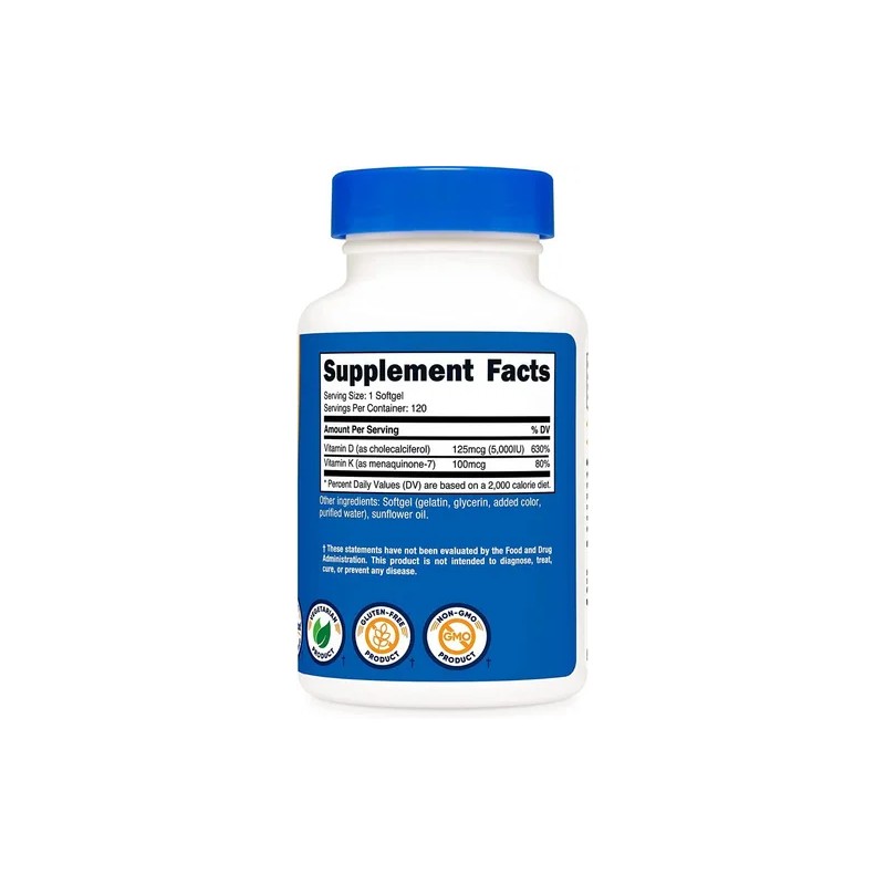 Nutricost Vitamina K2 + Vitamina D3, 120 Cápsulas Blandas Sabor Sin sabor