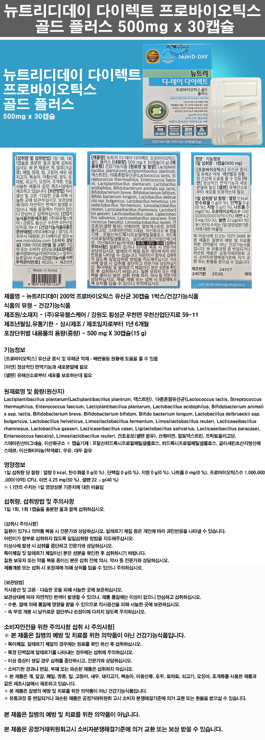뉴트리디데이 다이렉트 프로바이오틱스 골드 플러스 500mg x 30캡슐 1개 ()