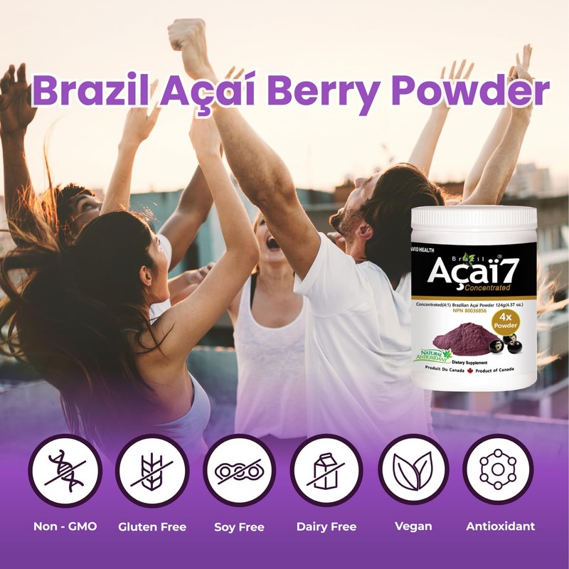 Introducing our Brazil Acai Berry Extract Powder, a potent dietary supplement designed to bolster your overall health and wellness. Each serving offers 4,000mg of 4:1 concentrated acai berry extract powder, renowned for its rich antioxidant content. These natural antioxidants aid in protecting your cells against the damaging effects of free radicals, contributing to robust immune health and overall wellness. Our Acai Berry Extract Powder is not just potentit's also carefully tailored to meet your dietary requirements and lifestyle. It's 100% vegan, making it a perfect addition to plant-based diets. Additionally, this powder is free from gluten, dairy, and soy, accommodating a broad range of dietary restrictions. We firmly believe in the importance of natural, healthful nutrition. Therefore, our supplement is Non-GMO, ensuring that you consume a product free from genetically modified organisms. Moreover, our product is recognized as a Natural Health Product of Canada, underlining our commitment to delivering products that adhere to the high standards of health and safety. Packaged in a 124g container, our Acai Berry Extract Powder provides a generous supply for your nutritional needs. Its versatile powder format makes it easy to incorporate into various recipes. Add it to your smoothies, yogurt, or other favorite dishes to boost their nutritional content effortlessly. Experience the potent benefits of acai berries in a versatile, easy-to-use powder form. Embrace the power of natural nutrition with our Brazil Acai Berry Extract Powder.