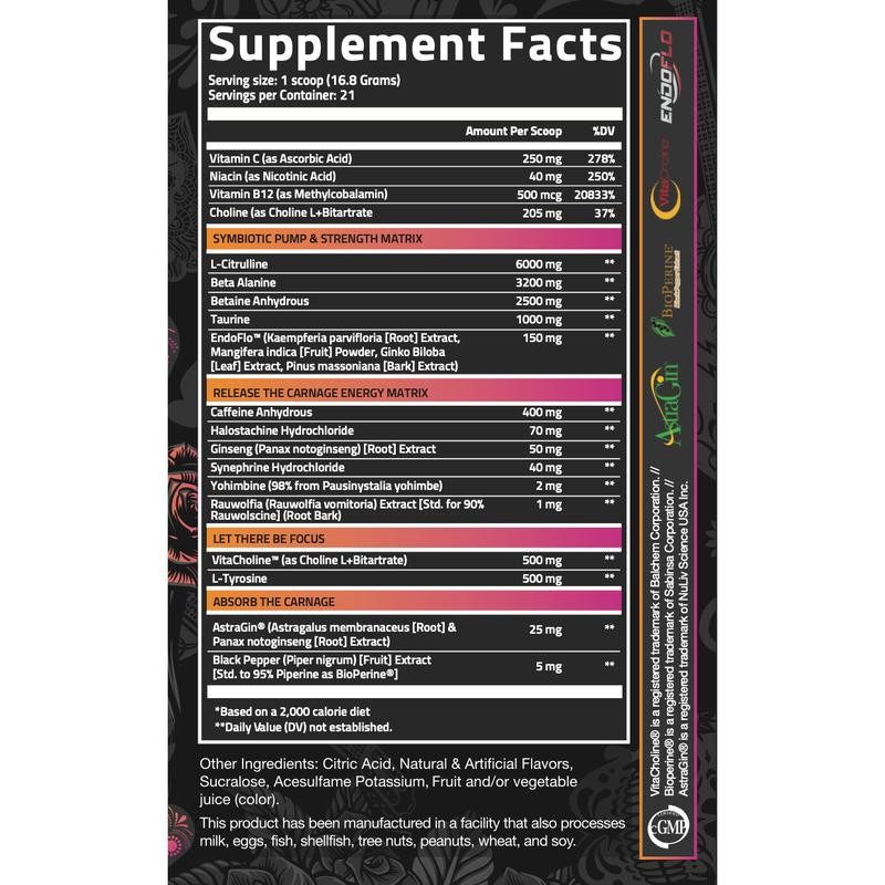 Nutrifitt CARNAGE Advanced Pre-Workout (21 Servings) - Flavor: Psychopath Punch