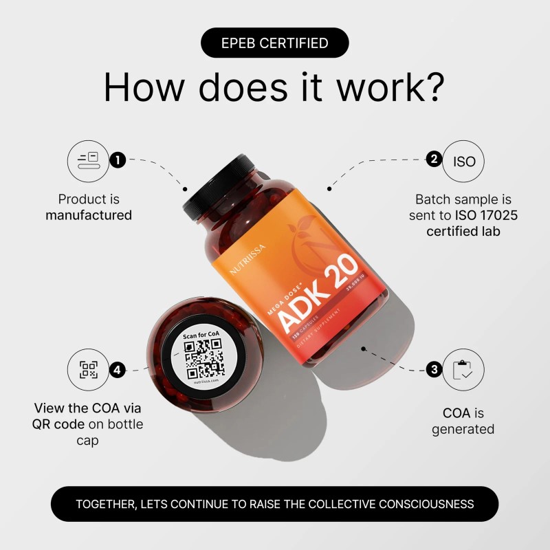- Convenient 120-Capsule Supply: With 120 easy-to-swallow vegan capsules, Nutriissa ADK 20 provides a four-month supply for daily health support.